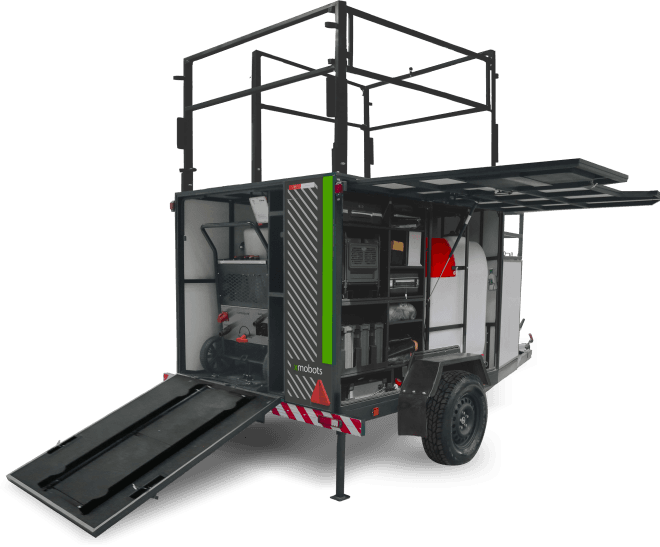 *Mensalidade do serviço de internet não inclusa, cobrada à parte diretamente pela operadora. ¹O SPAD 75 possui 1,98m de altura e, segundo a NR-35 que regulamenta o trabalho em altura, não é necessário a utilização de cinto de segurança para operar na área elevada. ²Lateral: RTK, Resfriador, Baterias (3), Carregador, EPIs, maleta de ferramentas), placas de sinalização.Traseiro: cadeira, guarda-sol, mangueiras de abastecimento e lavagem, cones.