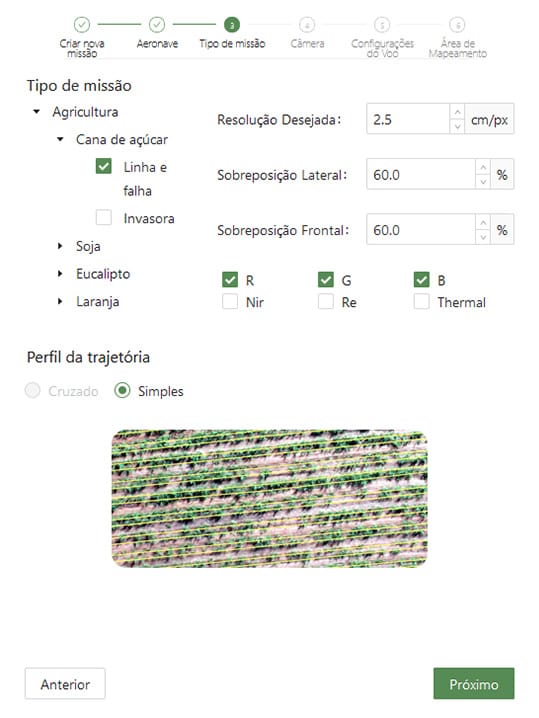 Para ayudar a este público en constante crecimiento, el sistema tiene como primer paso del menú «Asistente» el «Tipo de misión», una función que ofrece patrones de vuelo predefinidos para diferentes aplicaciones. De este modo, el usuario tiene la opción de introducir manualmente estos parámetros (elegir GSD y superposición) u optar por las configuraciones de vuelo predeterminadas en el software. Una forma sencilla y práctica de obtener siempre el mejor producto.