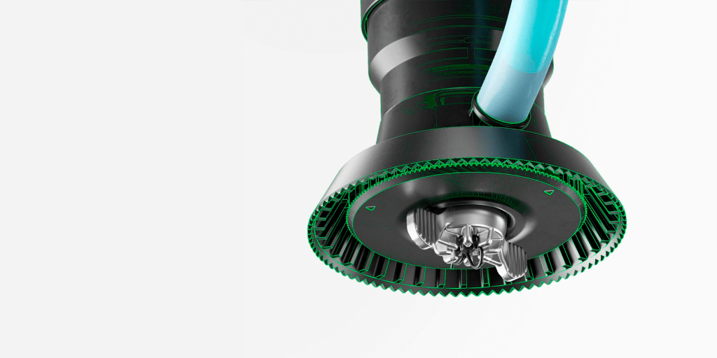 Uma estrutura de disco de pulverização de dupla atomização aumenta sua vida útil em 66%[4] e proporciona tamanhos de gotas mais uniformes, para um melhor efeito de pulverização.