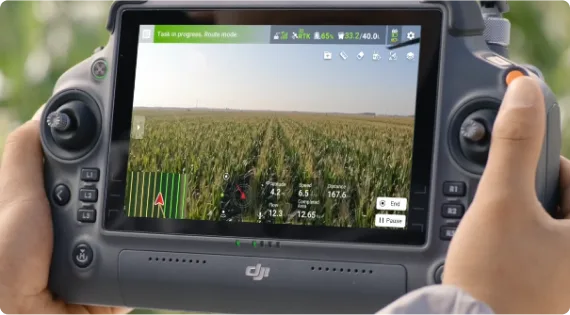 O DJI RC Plus tem uma tela de sete polegadas de alta luminosidade e um processador de oito núcleos para um funcionamento ideal. O planejamento inteligente de rotas minimiza as distâncias de voo com um tanque cheio, aumentando a eficiência da operação. O modo manual permite controlar as operações à vontade.