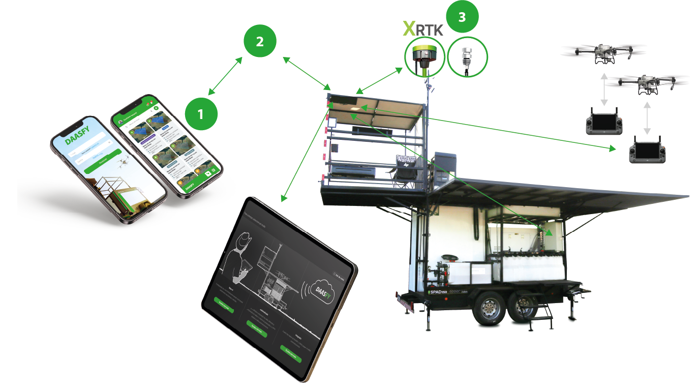 - O SPAD 200B é um sistema que define as operações agrícolas de alto desempenho, oferecendo uma logística robusta e automatizada para pulverização aérea com drones. Com capacidade para transportar dois drones DJI AGRAS (T50, T40 ou T30), o SPAD 200B garant